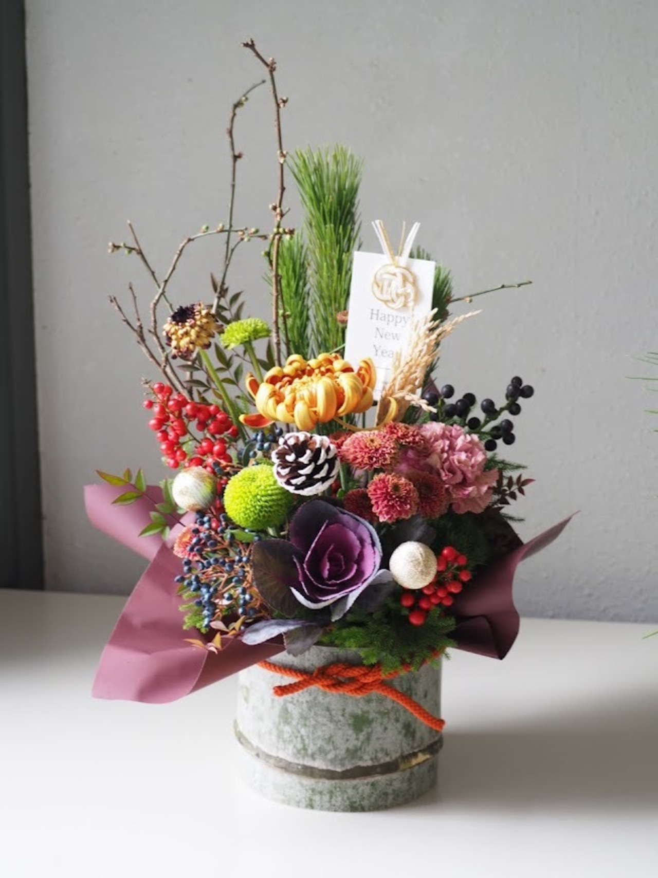 お正月にピッタリの花・花色組み合わせでお作りいたします!!